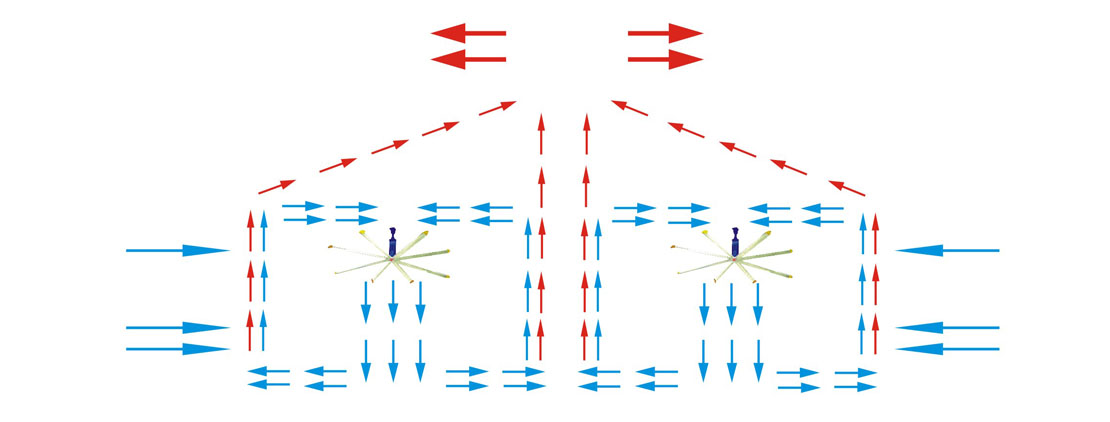 4、鋼絲繩:每根鋼絲拉索應力強度可達1000KG,每連接點設置雙重保護;在靜止時可以承受風扇重量,風扇發(fā)生意外時,鋼絲繩可以將風扇懸于空中,杜絕掉落危險。由第二道保險勾連接葉片,杜絕意外脫落。將該危險發(fā)生時對主固定梁的損壞降低到最低的水平。風扇在轉動過程中,由于反作用力的作用,風扇近乎浮在空中,各部件承受的重量微乎其微。